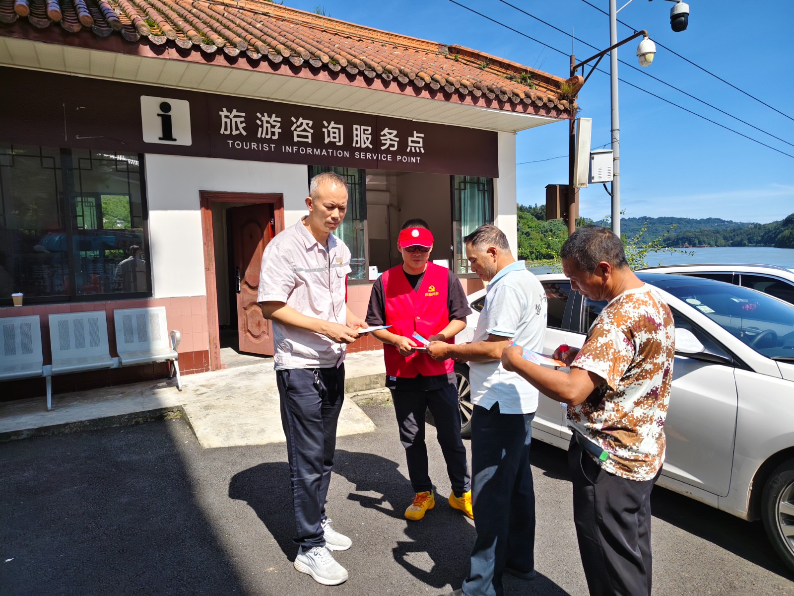 活動現(xiàn)場,志愿者耐心地為游客提供景區(qū)景點、游覽路線、交通信息等咨詢服務(wù),幫助游客規(guī)劃合理的游覽行程,確保游客能夠順利、愉快地游覽景區(qū)。在景區(qū)停車場區(qū)域,協(xié)助景區(qū)工作人員維持交通秩序,引導(dǎo)游客有序停車,保障了停車場的暢通和游客的安全。黨員志愿者們還積極開展《中華人民共和國反有組織犯罪法》宣傳活動。向他們發(fā)放宣傳手冊,提高游客對有組織犯罪的認識和防范意識,引導(dǎo)廣大游客自覺遵守法律法規(guī),共同維護社會和諧穩(wěn)定。