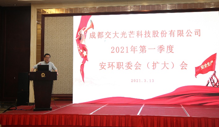 交大光芒黨總支書記、安環(huán)職委會主任、總經理劉成輝對2021年安環(huán)職重點工作進行部署,并安排了近期安全環(huán)保大檢查工作。劉成輝指出,公司上下要認真落實疫情防控常態(tài)化要求,仔細梳理安全生產、環(huán)境保護、職業(yè)健康工作,落實風險分級管控和隱患排查整改雙重預防機制,將安全關口前移,保障公司經營發(fā)展平安,并與各部門分管領導和負責人簽訂了2021年度安環(huán)職目標責任書。