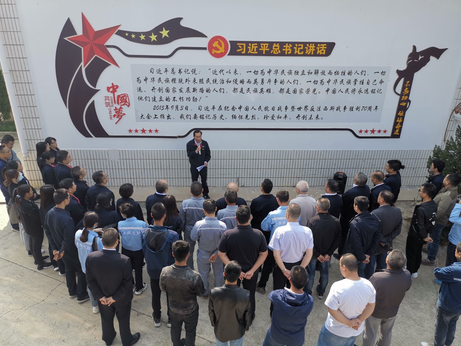 蒼松翠柏掩映下革命烈士紀念碑巍然聳立,伴隨著鏗鏘激昂的《義勇軍進行曲》,全體人員齊聲高唱中華人民共和國國歌。國歌唱畢,全場肅立,向革命英烈默哀致敬。之后,公司黨總支副書記、總經(jīng)理蔡承德帶領(lǐng)全體黨員重溫了入黨誓詞。公司黨總支書記、董事長徐孝剛代表全體人員向革命英烈敬獻花籃,并駐足凝視、仔細整理花籃緞帶。敬獻花籃儀式結(jié)束后,全體人員對烈士紀念碑和烈士墓進行了祭掃,徐孝剛以《為了共同的事業(yè)》為題,背靠習(xí)近平總書記紀念抗日戰(zhàn)爭暨世界反法西斯戰(zhàn)爭勝利70周年大會講話照壁,講授了一堂生動的黨史學(xué)習(xí)微黨課。