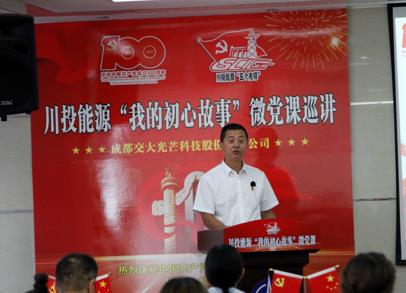 在全黨深入開展黨史學習教育之際,5月25日,川投能源“我的初心故事”微黨課巡講團走進交大光芒。微黨課巡講團由能源本部、天彭電力、槽漁灘公司、交大光芒、川投電力和攀水電公司選派的6名優(yōu)秀黨員代表組成。川投能源黨委副書記、工會主席楊超龍,交大光芒黨總支書記、總經(jīng)理劉成輝和交大光芒黨員、員工代表30余人參加本次活動。