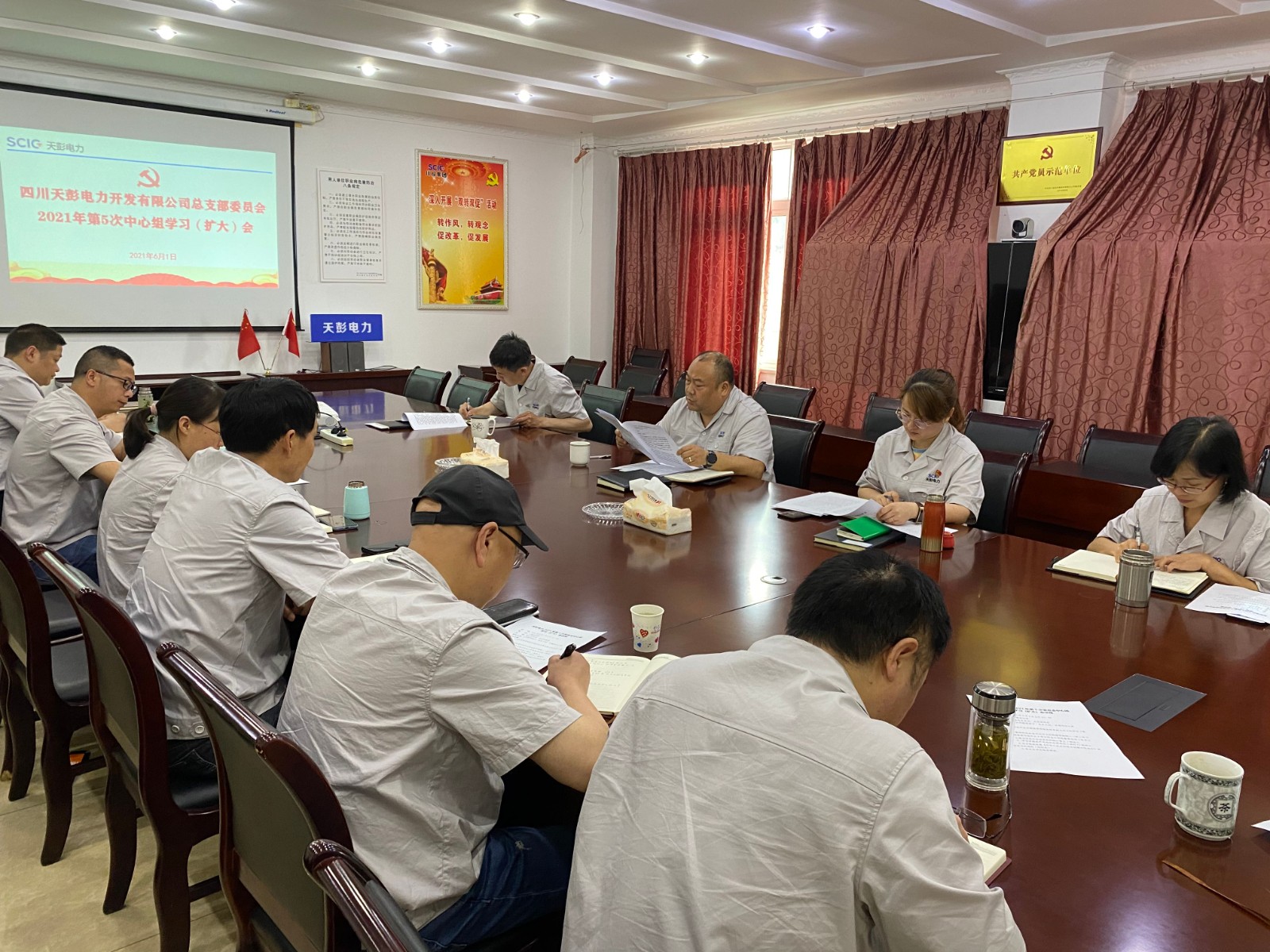 6月1日上午,川投能源天彭電力黨總支在公司二樓會(huì)議室召開2021年第5次中心組學(xué)習(xí)(擴(kuò)大)會(huì),公司領(lǐng)導(dǎo)、黨員干部、關(guān)鍵崗位人員參加會(huì)議,會(huì)議由黨總支書記、總經(jīng)理陳忠主持。