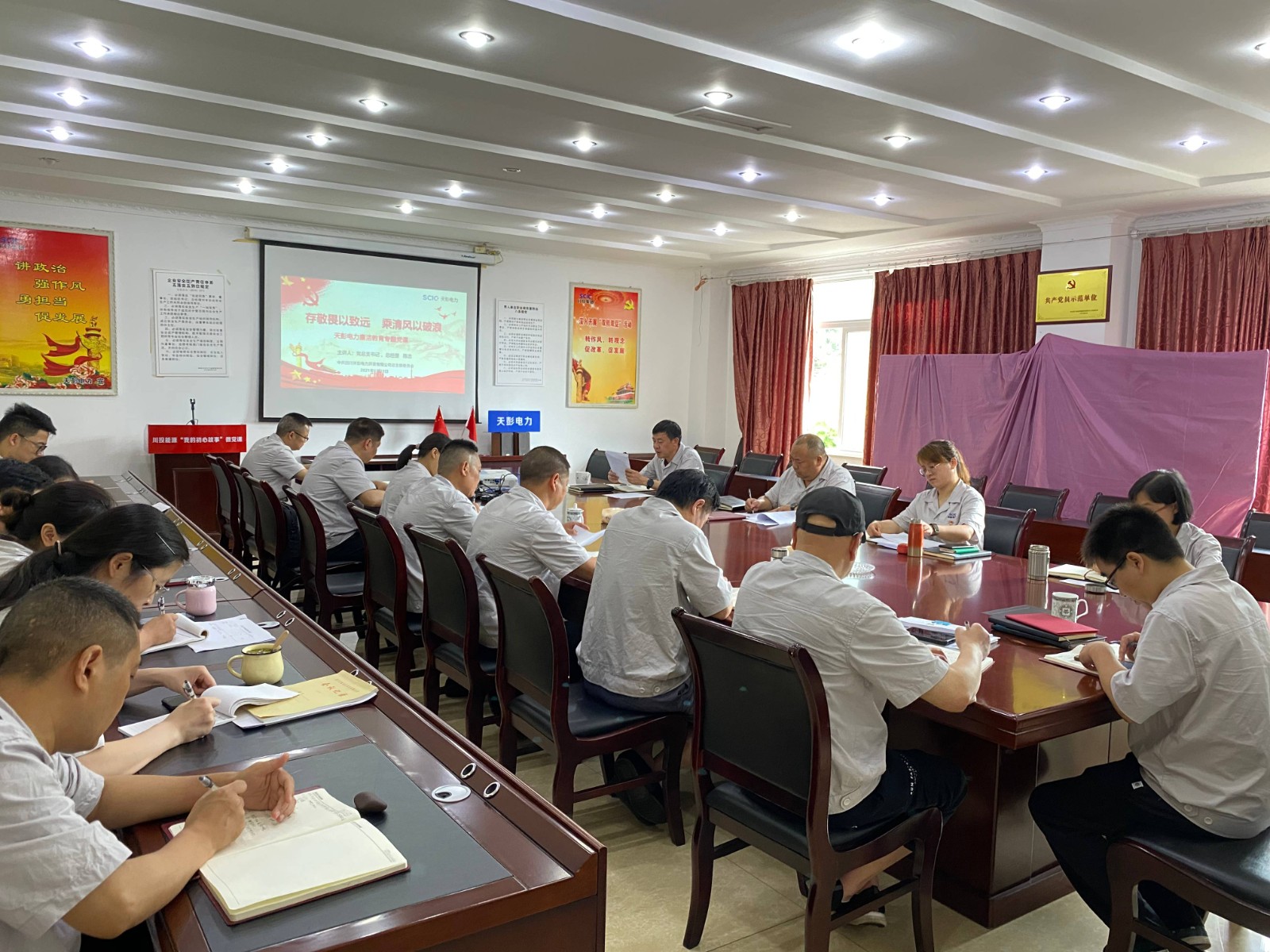 為持之以恒用習(xí)近平新時代中國特色社會主義思想武裝黨員、教育干部、指導(dǎo)工作,認(rèn)真落實(shí)新形勢下全面從嚴(yán)治黨新部署新要求,馳而不息糾治“四風(fēng)”,6 月29日,川投能源天彭電力召開慶“七·一”專題廉潔黨課暨廉潔警示教育會。