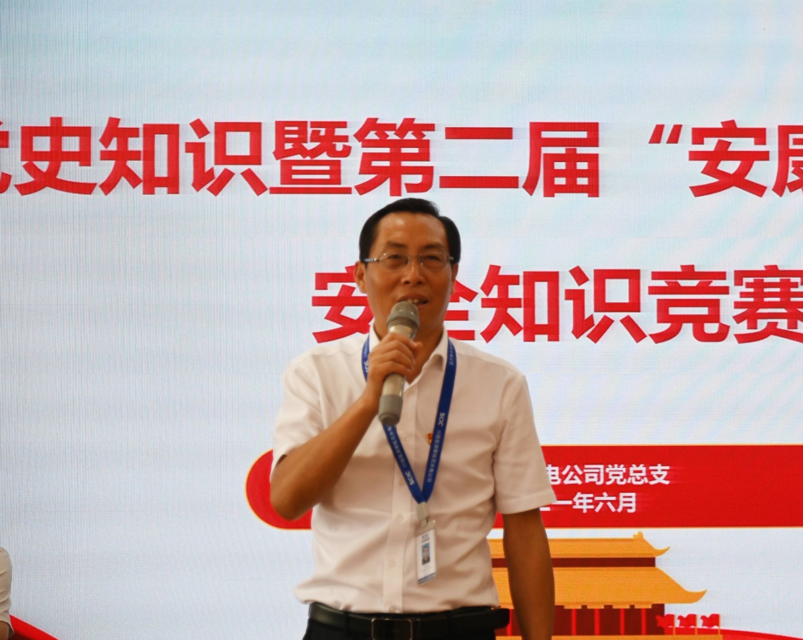 公司黨總支委員、董事會(huì)秘書、工會(huì)主席鄧勇在開(kāi)幕致辭中講到:本次知識(shí)競(jìng)賽一方面是深入開(kāi)展黨史學(xué)習(xí)教育,回顧黨的光輝歷程,謳歌黨的豐功偉績(jī);另一方面是踐行“落實(shí)安全責(zé)任,推動(dòng)安全發(fā)展”的安全生產(chǎn)月活動(dòng)主題,目的就是在全銀江水電站范圍內(nèi)掀起新一輪黨史知識(shí)、安全知識(shí)學(xué)習(xí)熱潮,激發(fā)黨員干部群眾為銀江工程辦實(shí)事的熱忱,形成以學(xué)促行的良好習(xí)慣,讓黨史教育和安全意識(shí)更加深入人心。