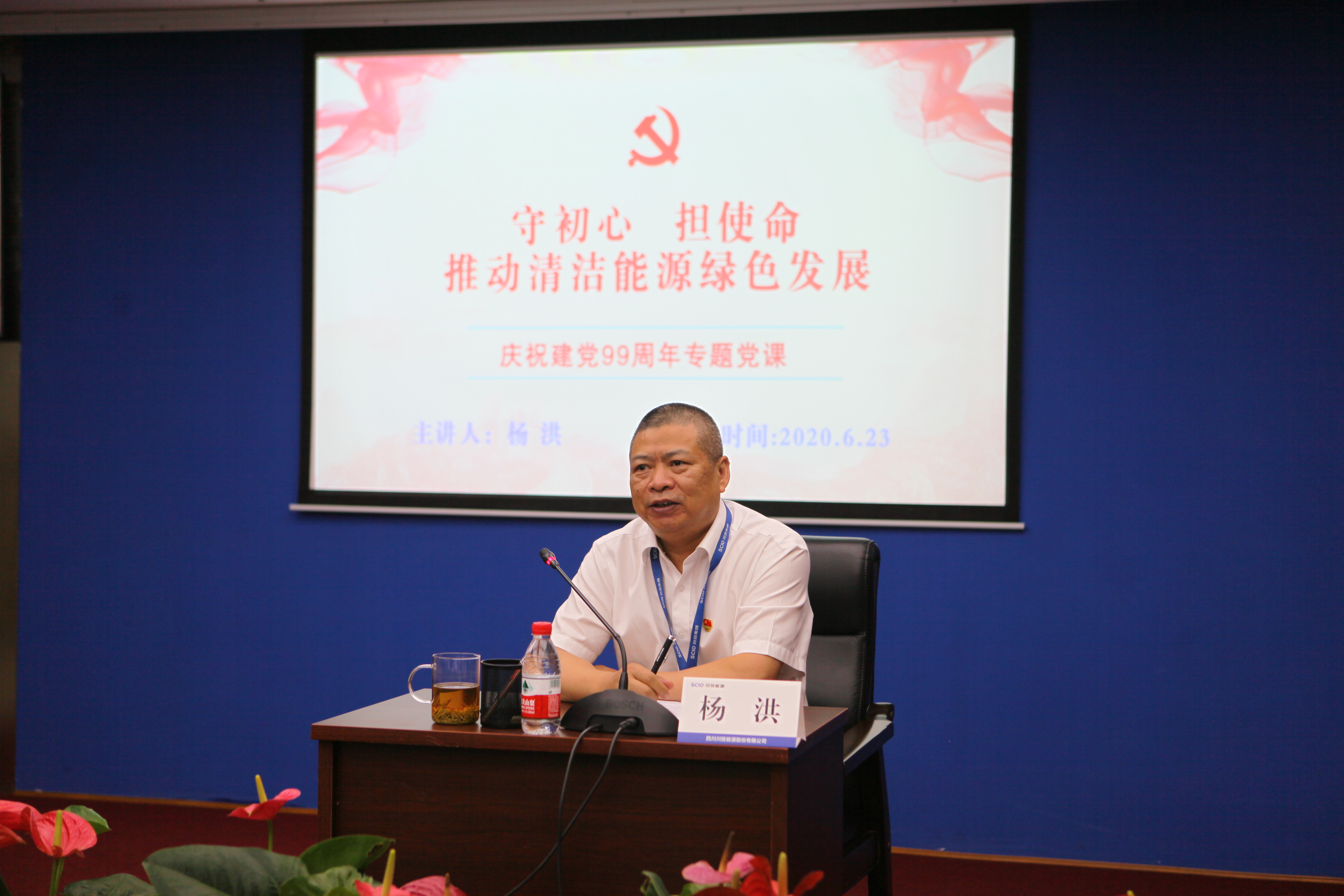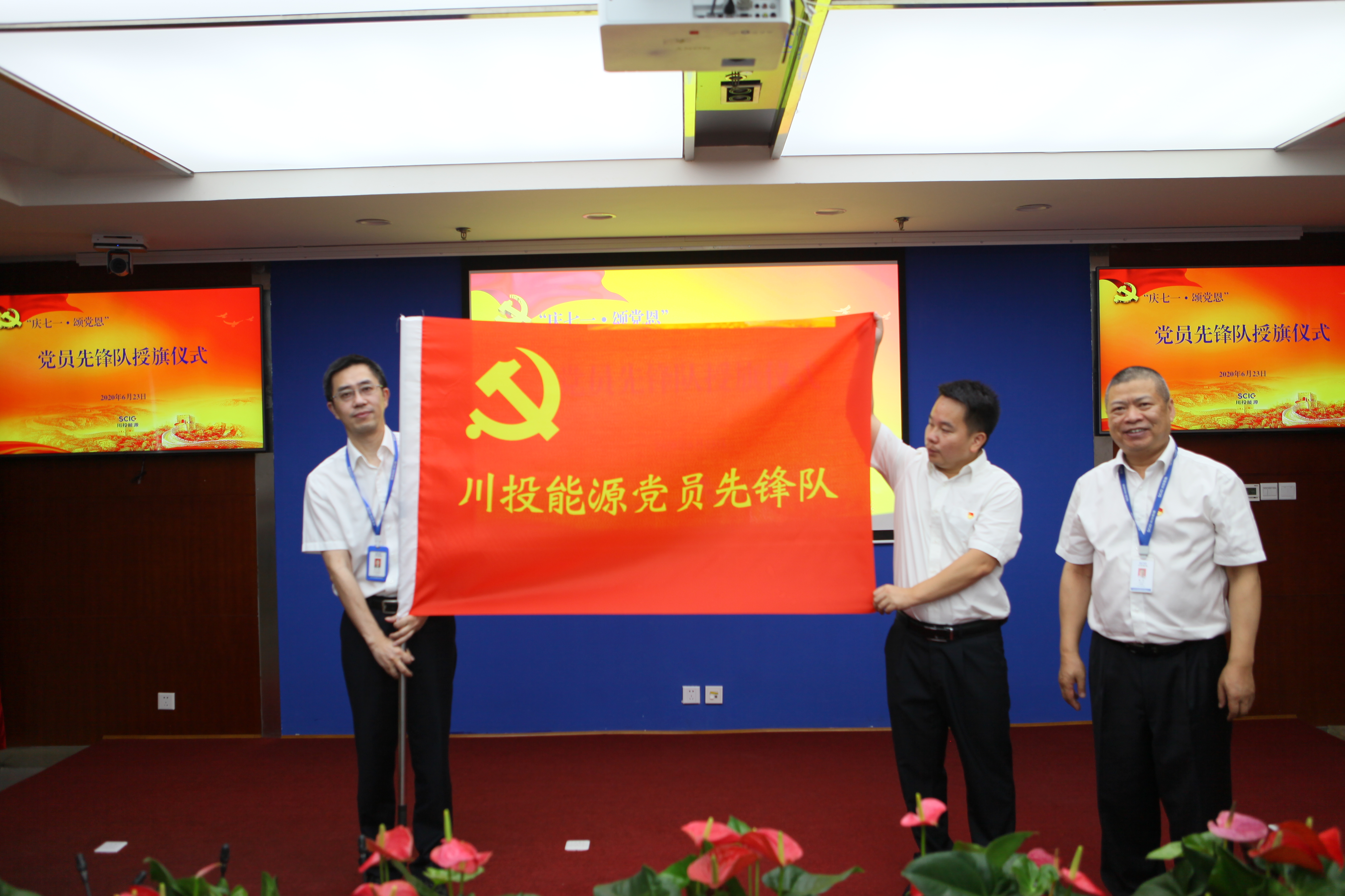 值此川投能源“紅色引擎藍(lán)籌先鋒”(簡稱“五個先鋒”)黨建品牌創(chuàng)建工作引向深入之際,6月23日,川投能源黨委采用現(xiàn)場和視頻會議相結(jié)合的方式,以黨員承諾踐諾、黨員先鋒隊授旗、發(fā)布公司黨建品牌標(biāo)識以及公司黨委書記講黨課等內(nèi)容為載體,組織全體黨員、入黨積極份子、新黨員代表隆重召開紀(jì)念建黨九十九周年大會,為中國共產(chǎn)黨第99個生日獻(xiàn)上賀禮。公司黨委副書記、工會主席楊超龍主持會議。